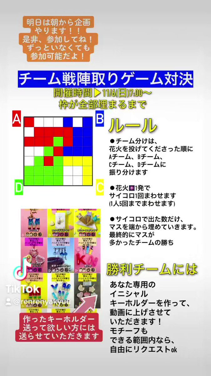 11/6(日)7:00〜陣取りゲームをtiktokでやります☺️