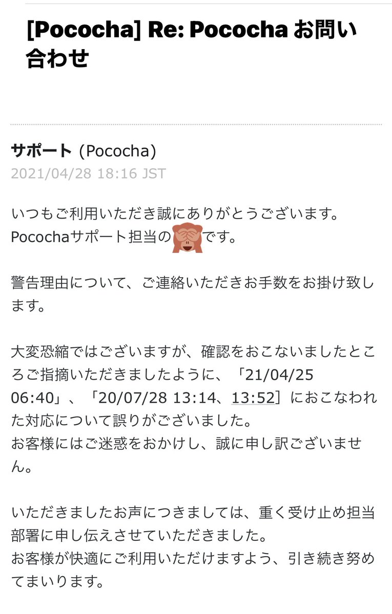 以前も何も違反してないプロフィールの写真も消されてたので問い合わせしたら、、、
